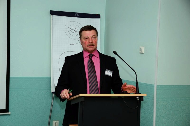 Тему химикатов продолжил профессор Иван Николаевич Ковернинский, который сконцентрировал внимание аудитории на новых факторах эффективности химических средств в технологии бумаги и картона. Выступающий говорил о повышении эффективности технологии, указыв на то, что бумажная масса является сложной гетерогенной системой, состоящей из полиразмерных компонентов – волокна, коллоидно и молекулярно растворенных частиц. Общим свойством данной системы является наличие отрицательных электрических зарядов на поверхности компонентов массы. Т.е., в целом, бумажная масса является электронейтральной, при электроотрицательной поверхности компонентов. В процессах подготовки бумажной массы сохраняется определенный электрический баланс. Однако при добавлении в систему положительно заряженных химических продуктов, существующий баланс зарядов на поверхности компонентов и в системе изменяется, а, следовательно, изменяются свойства массы.